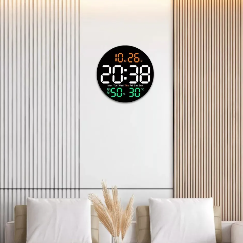 Reloj Redondo Moderno Led Digital De Pared Control Remoto Negro Negro