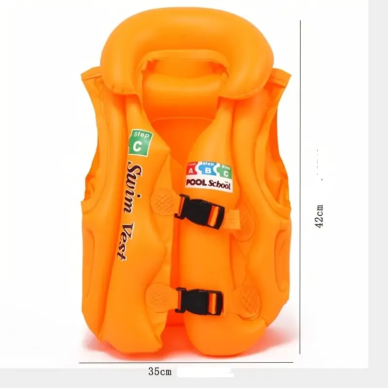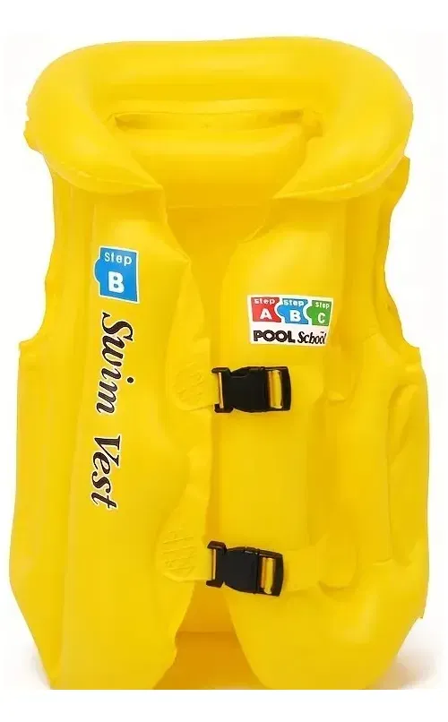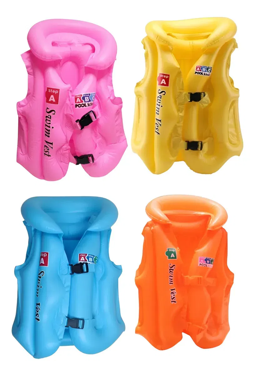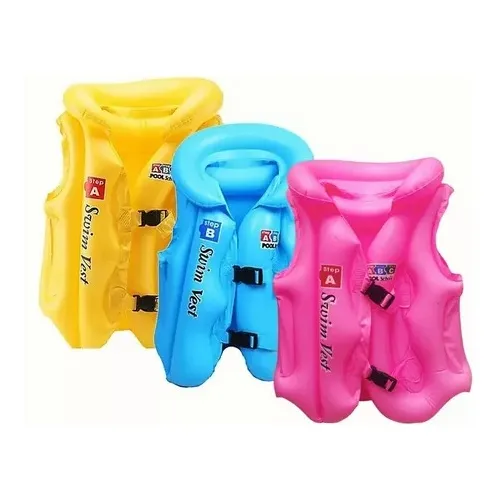 Chaleco inflable para nadar con soporte de seguridad para niños Talle S : Menos de 20kg Talle M: De 20 a 30 kg Estos chalecos de natación para club solar con flotación, para niños están especialmente diseñados para ayudar a los niños de 4 a 8 años, con los conceptos básicos de la seguridad de la pileta y la natación, fabricados con un resistente vinilo probado previamente, cuentan con tres cámaras de aire separadas con válvulas de seguridad para mayor seguridad y flotabilidad, dos hebillas ajustables de liberación rápida, disponibles en amarillo brillante con instrucciones de seguridad para nadar, impresas en ellas. Tenga en cuenta: Los chalecos flotantes no deben usarse como una alternativa a la supervisión de un adulto cuando los niños están cerca de piscinas y agua. CONSULTAR COLOR DISPONIBLE